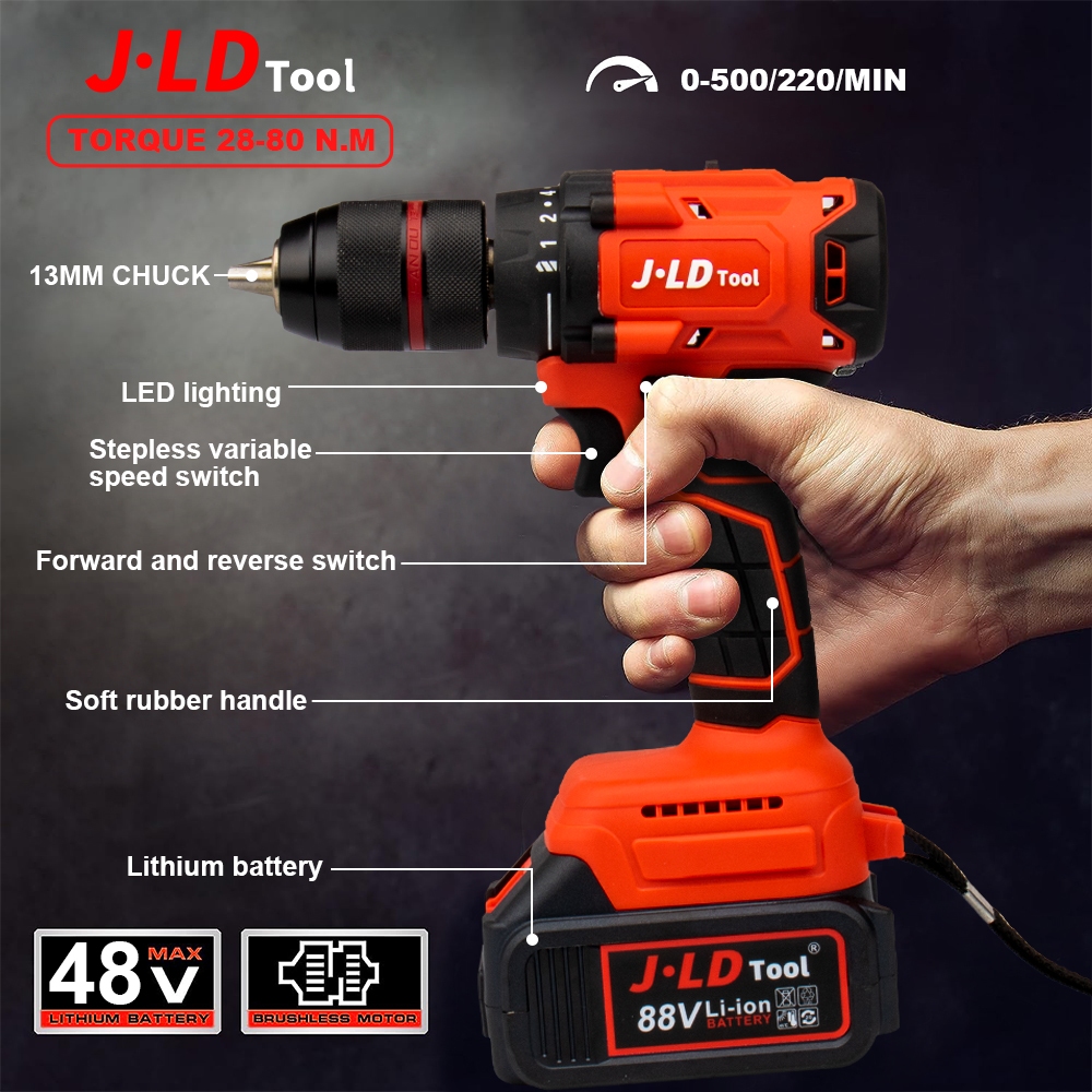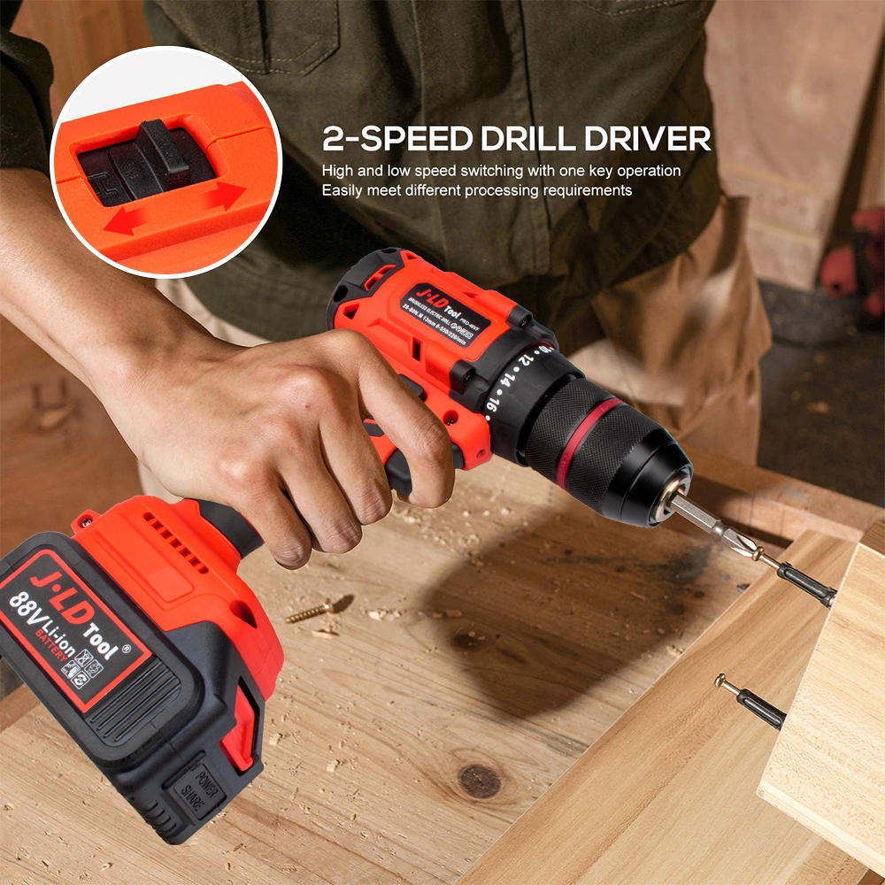 JLD 88Vf Bor Dan Impact Wrench Paket Lengkap Brushless 350N.m Impact Baterai Impact Cordless Impact Jld Mesin Bor Batera