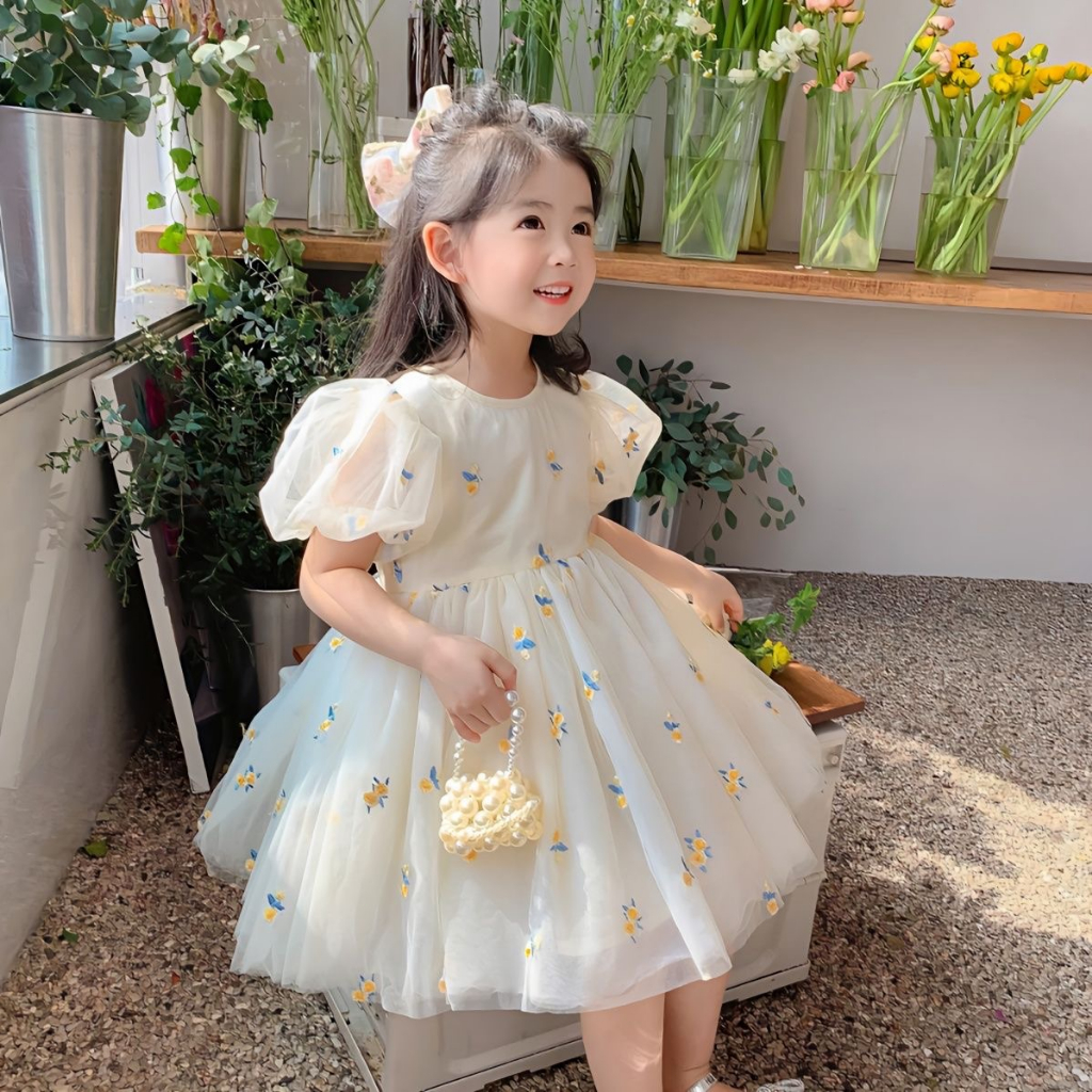 Haasya Kids 1-6 Tahun Rok Anak Perempuan Musim Panas Gaun Lucu Bordir Baru Wanita Versi Korea Putri Gaun Putri Jala Berb