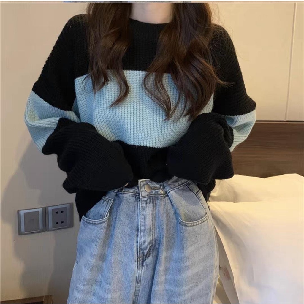FASHION KOREA BIG STRIPE KNITE BLOUSE RAJUT ATSAN KOREA Murah Gratis Ongkir