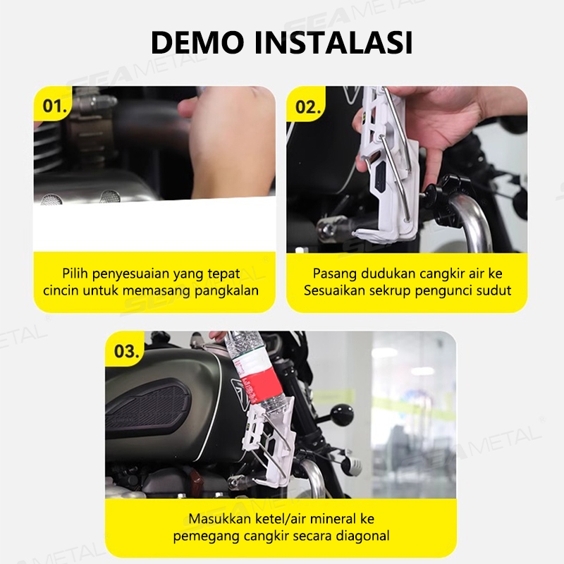 Tempat Botol Minum Motor Universal di Spion Stang Crashbar SEAMETAL