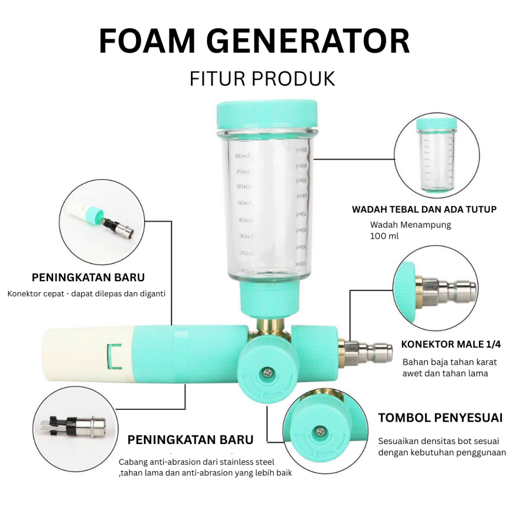 Botol Busa Salju Rx77 Foam Lance Foam Generator 100Ml Dengan Nosel Adjustable & Kopling 14" Untuk Mesin Cuci Mobil Kend