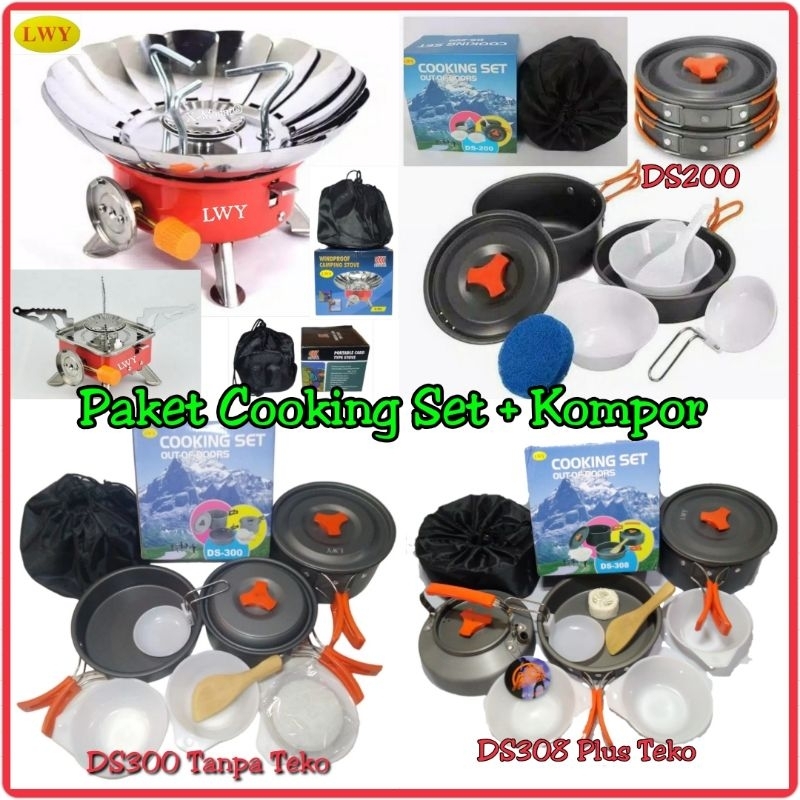 Paket Alat Masak Camping+Kompor, Cooking Set Outdoor Nesting Misting