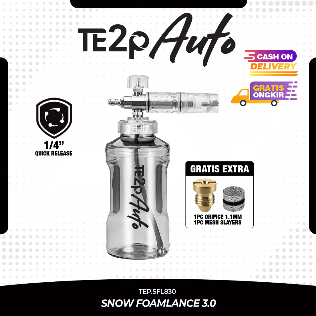 Te2P Auto Snow Foamlance 3.0 Kapasitas 1 Liter Quick Release Adaptor 14" Free Mesh Dan Oriface - Botol Shampoo Penghasi