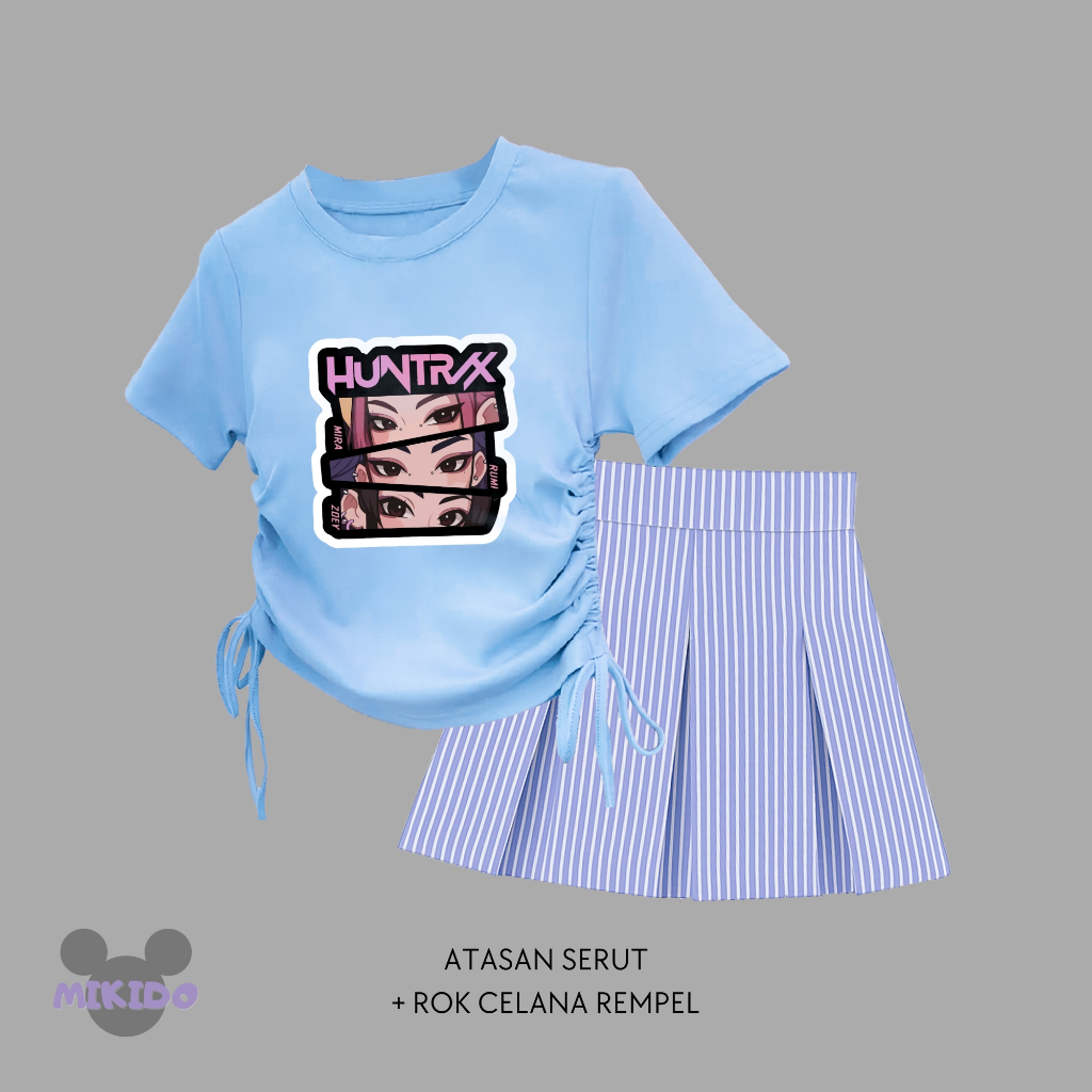 Setelan Kaos Serut Crop Top Dan Rok Celana Rempel Salur Perempuan Huntrix Umur 1-14 Tahun Part 2