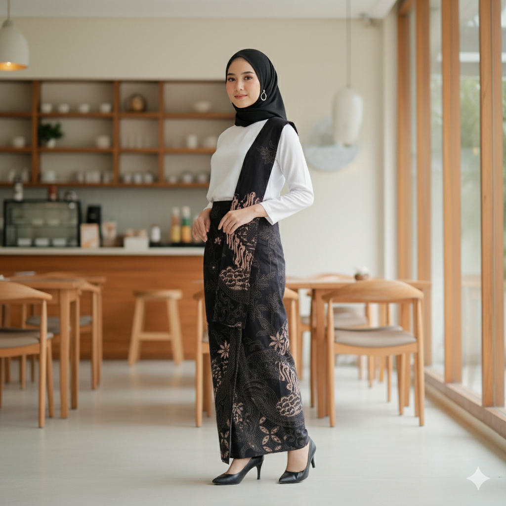 Galeri Batik Ardev - Couple Sarimbit Rok & Kemeja Reguler Warna Hitam Bahan Katun Motif Peksi Seling