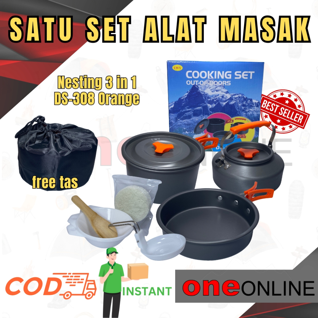 Ds-308 Cooking Set Outdoor Nesting Teko Misting Ds308 Ketel Portable Alat Masak Gunung