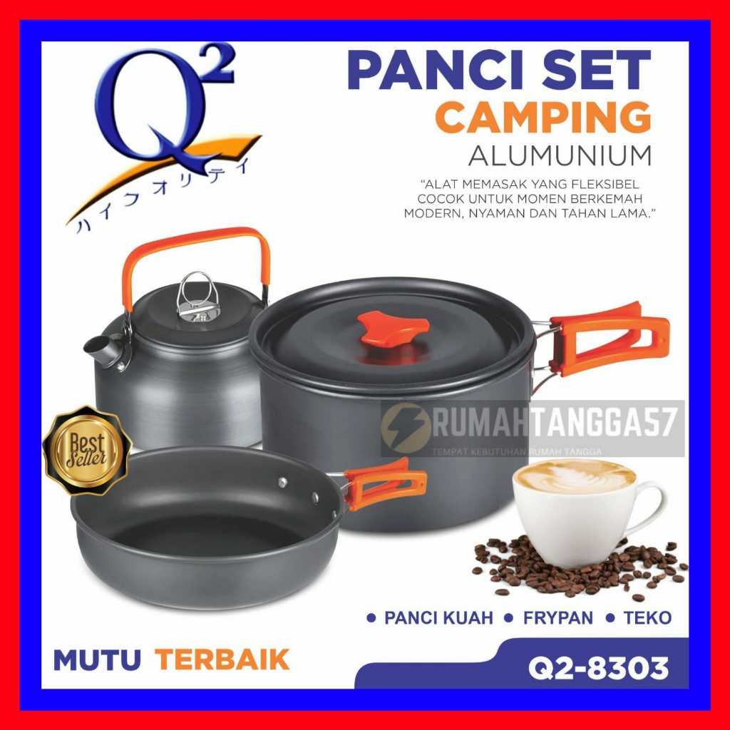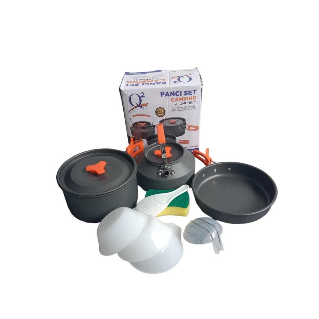 Panci Set Camping Q2-8303 Panci Set Camping Alumunium Q2 8303 Alat Masak Camping Piknik 3In1 Outdoor Alat Masak Mi