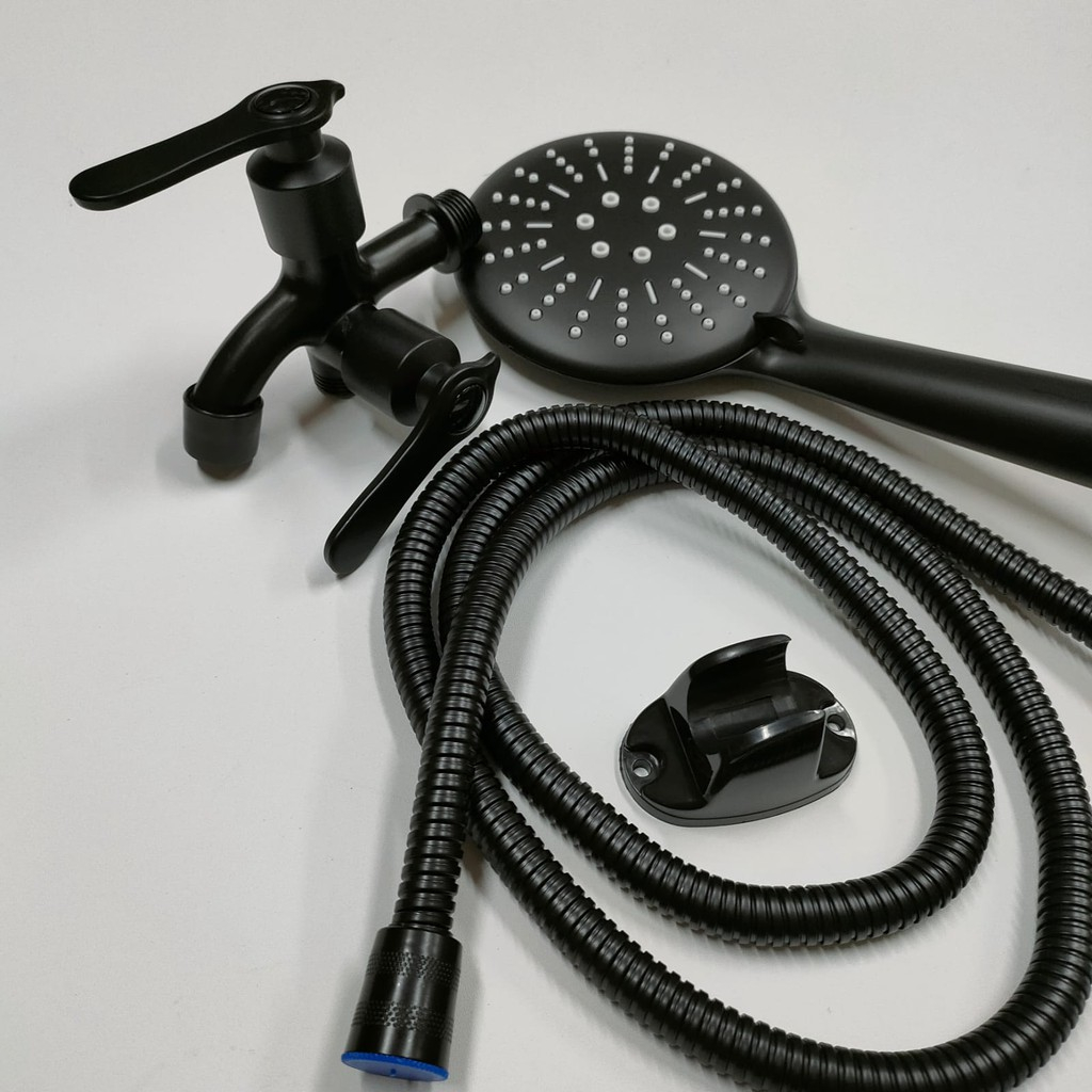 Paket Hand Shower Hitam 339 Dengan Kran Cabang Fb Black Minimalis Murah Viral