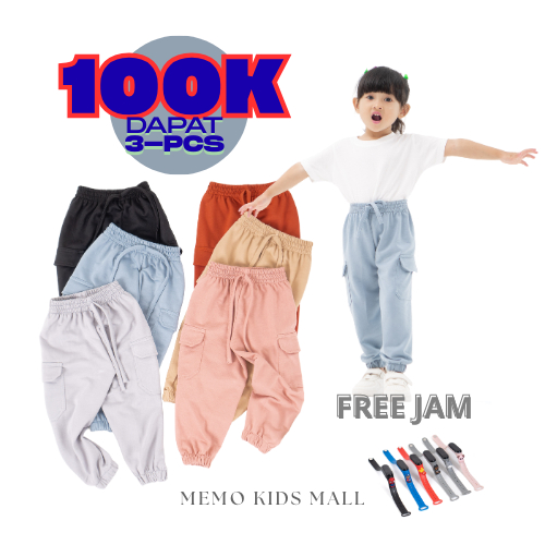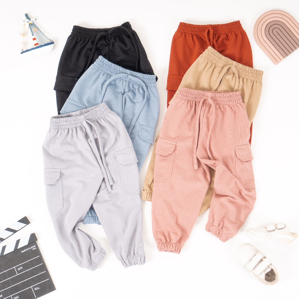 100RB 3-PCS | Celana Panjang Jogger Anak 1-10 Tahun Premium Kargo Anak Laki Laki Perempuan Unisex Sofh babby Terry