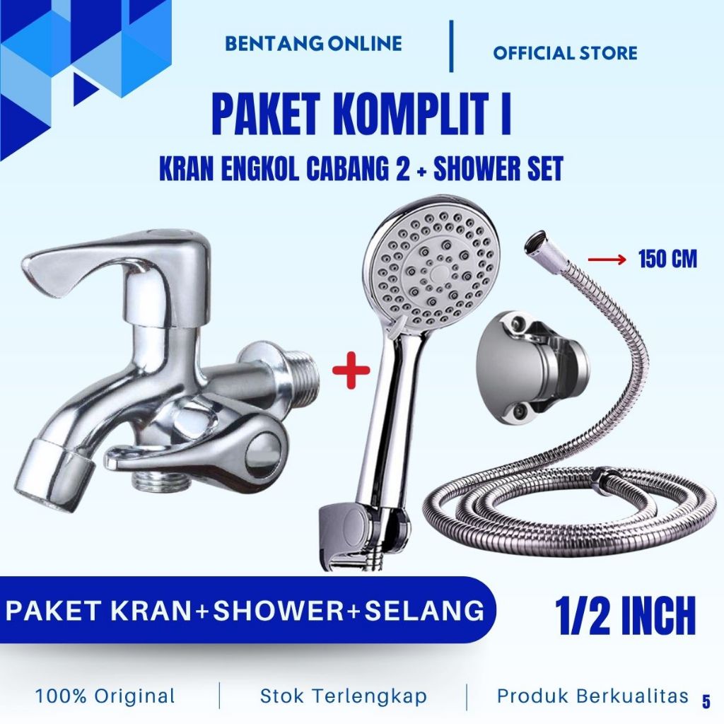 Shower Set Kran Kamar Mandi Paket Komplit I Stainless Keran Air Engkol Cabang 2 Selang Stenlis