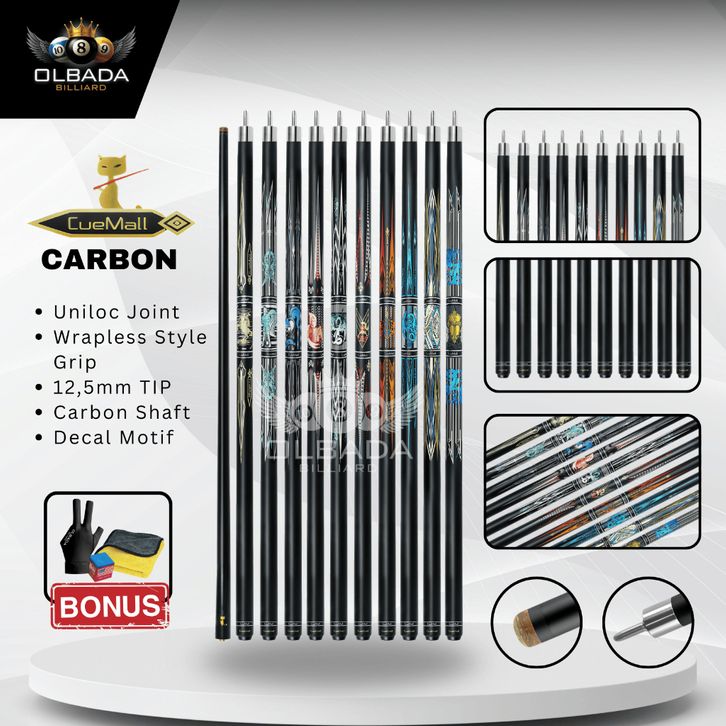 Billiard Carbon | New Cue Play | Set Stik Billiard Karbon | Olbada | Paket Hemat