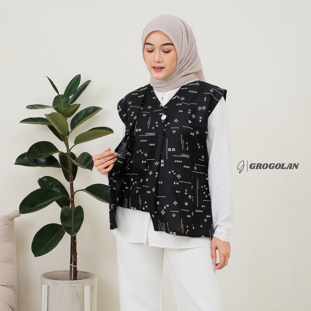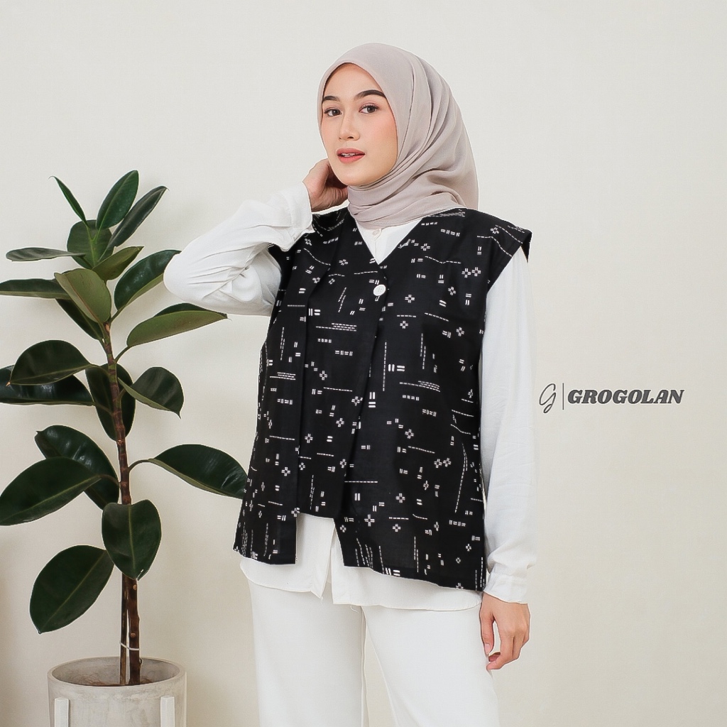 Grogolan Vest Outer Rompi Batik V Neck Atasan Wanita Tradisional