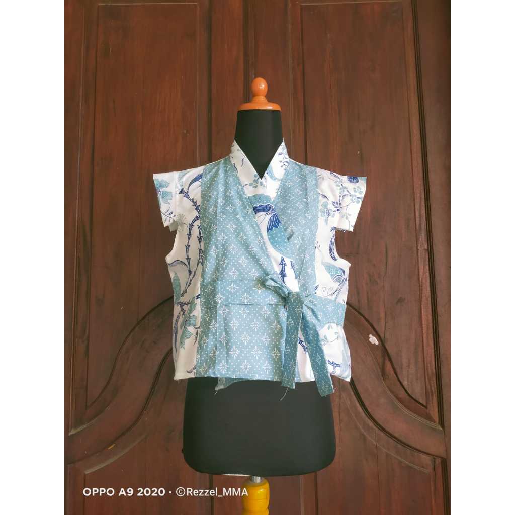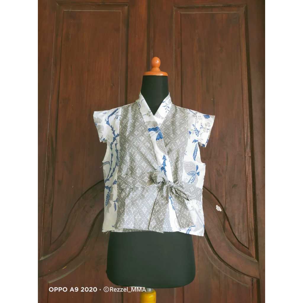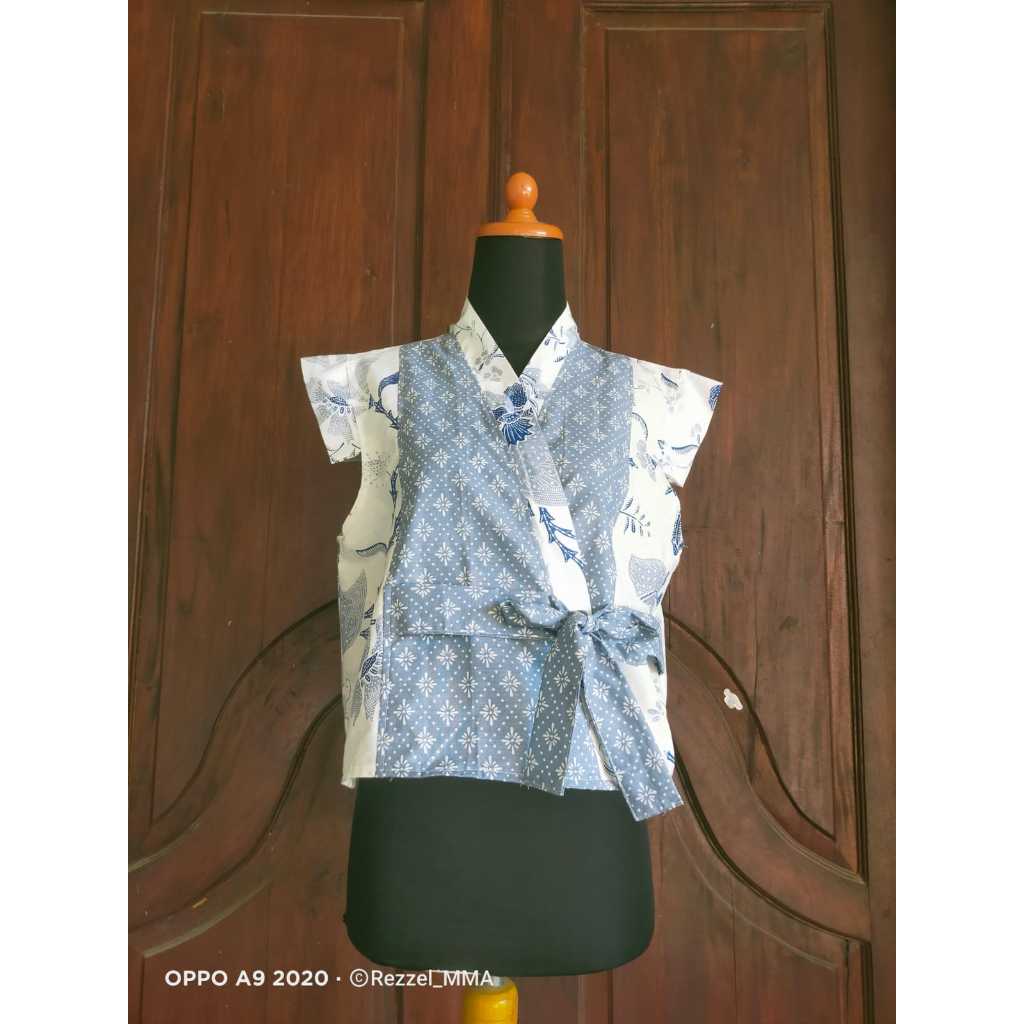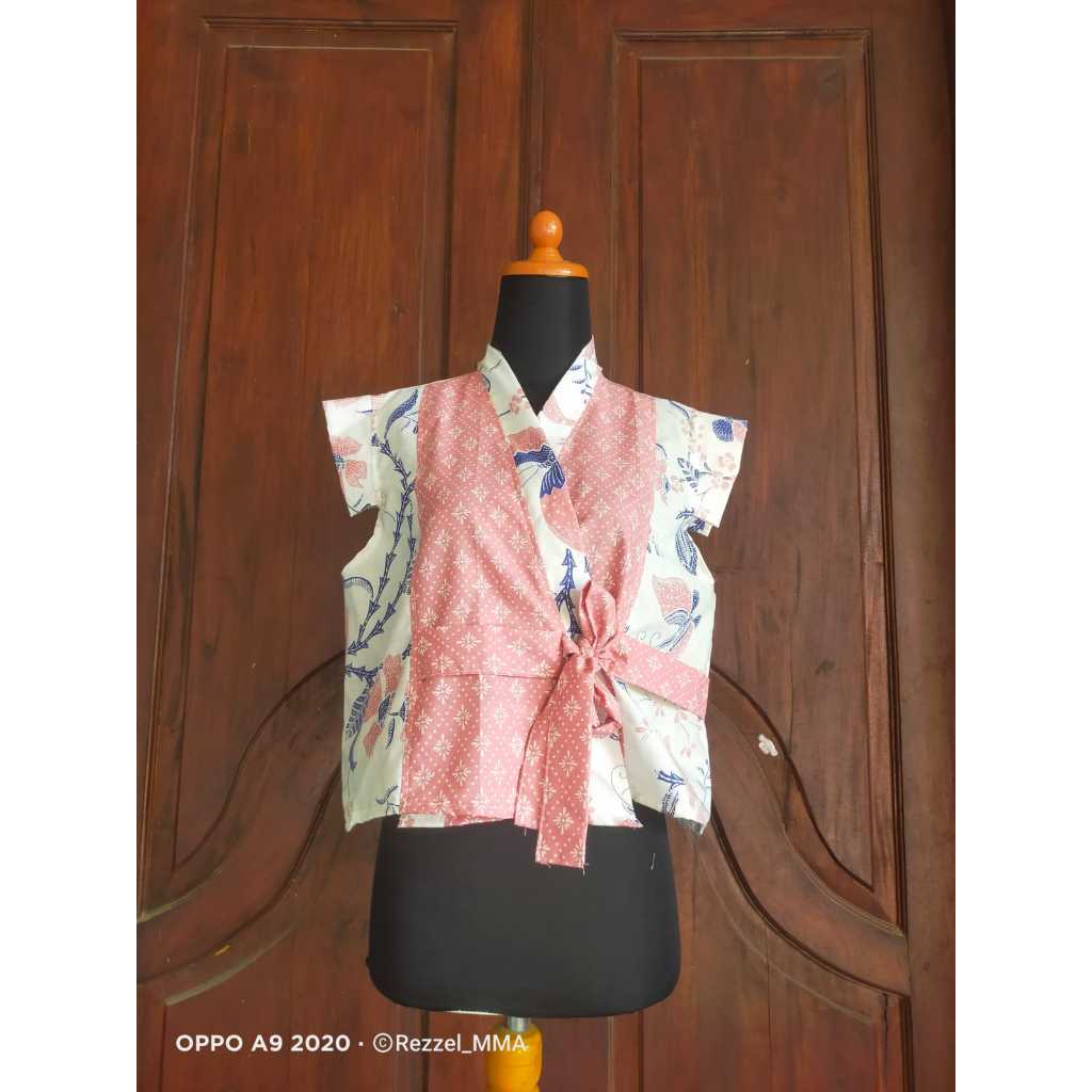 Outer Bolero - Outer, Rompi, Vest Batik Tali Pita Modern Tanpa Lengan Leher V, Motif Bunga, , Warna Biru Pink To