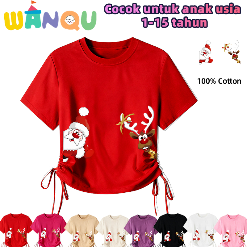 Wanqu.Kaos Anak Desain Tali Serut Gaya Koreakaos Natal Anakatasan Anak Selamat Natal Usia 2-16 Tahunkaos Motif Natal