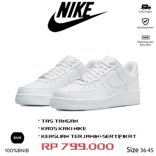 NǏKE AIR FORCE 1 LOW TRIPLE WHITE FULL WHITE NǏKE SEPATU 100 PERSEN BNIB - EUR 36 / 22.5CM