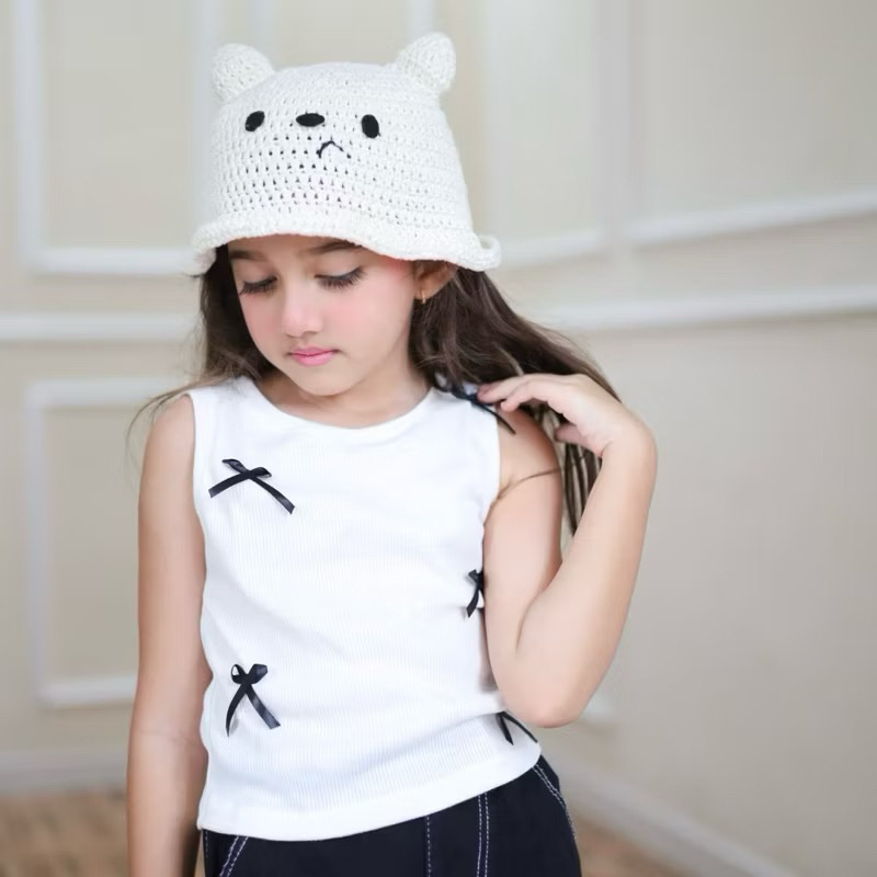1-6 Tahun Atasan Anak Perempuan Ribbon Top Kaos Anak Kutung