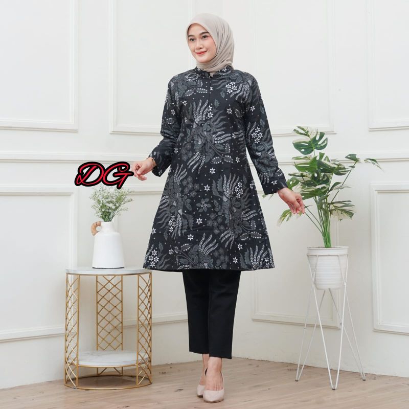 Tunik Batik Wanita Modern Premium Jumbo Terbaru Baju Seragam Kantor Guru Kerja Karyawan Kondangan