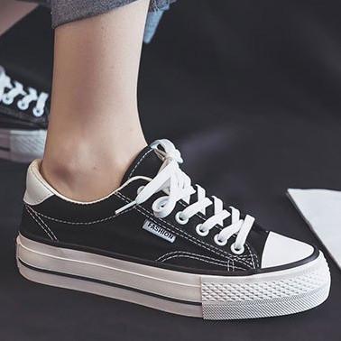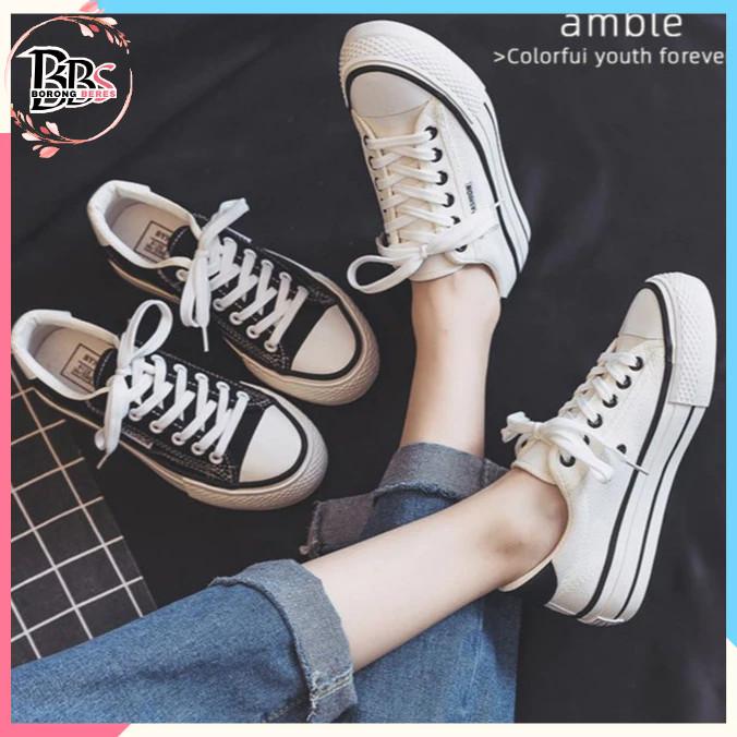 BORES SEPATU SPORT KODE 7002 SEPATU SNEAKERS CANVAS WANITA CASUAL WOMEN SHOES CASUAL FASHION SCHOOL SEPATU WANITA FASHION KOREA - HITAM, 36