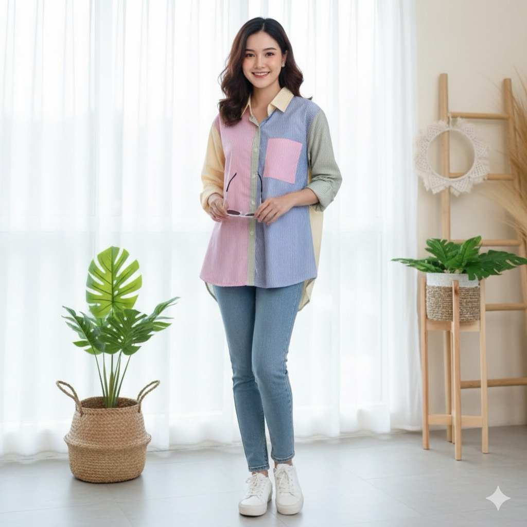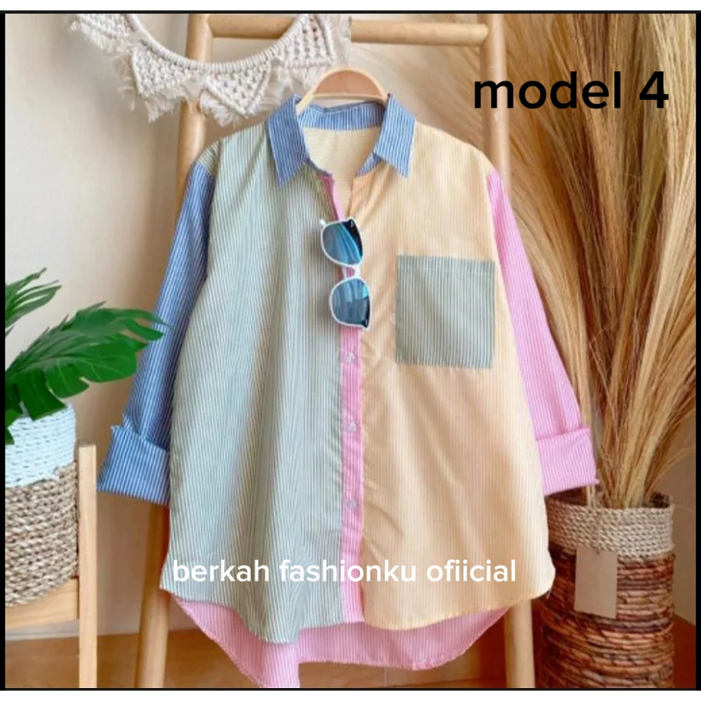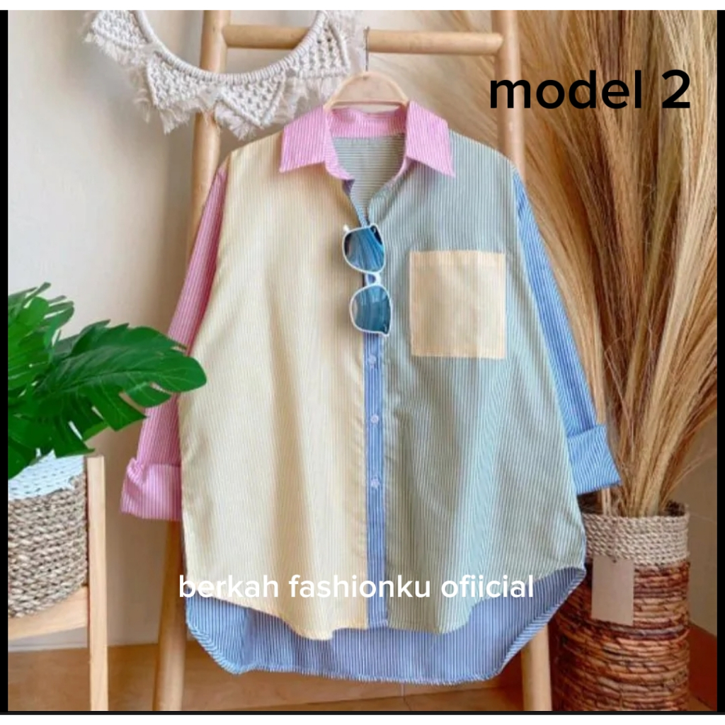 kemeja wanita kombinasi/atasan wanita kekeinian terbaru Murah Gratis Ongkir