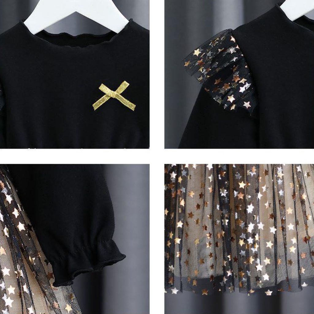 0-9 Tahun Dress Anak Pesta Black Mamba Star 90Ld Long Perempuan Gaun Hitam Rok Tile Lengan Panjang Kids