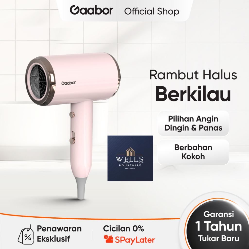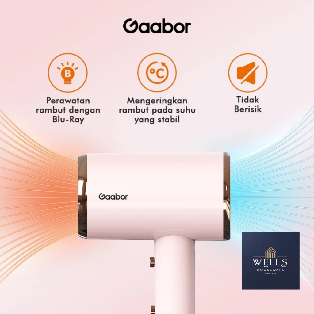 Wells Houseware - Gaabor Hair Dryer Pengering Rambut Cahaya u Anion Teknologi Blu-Ray Pink