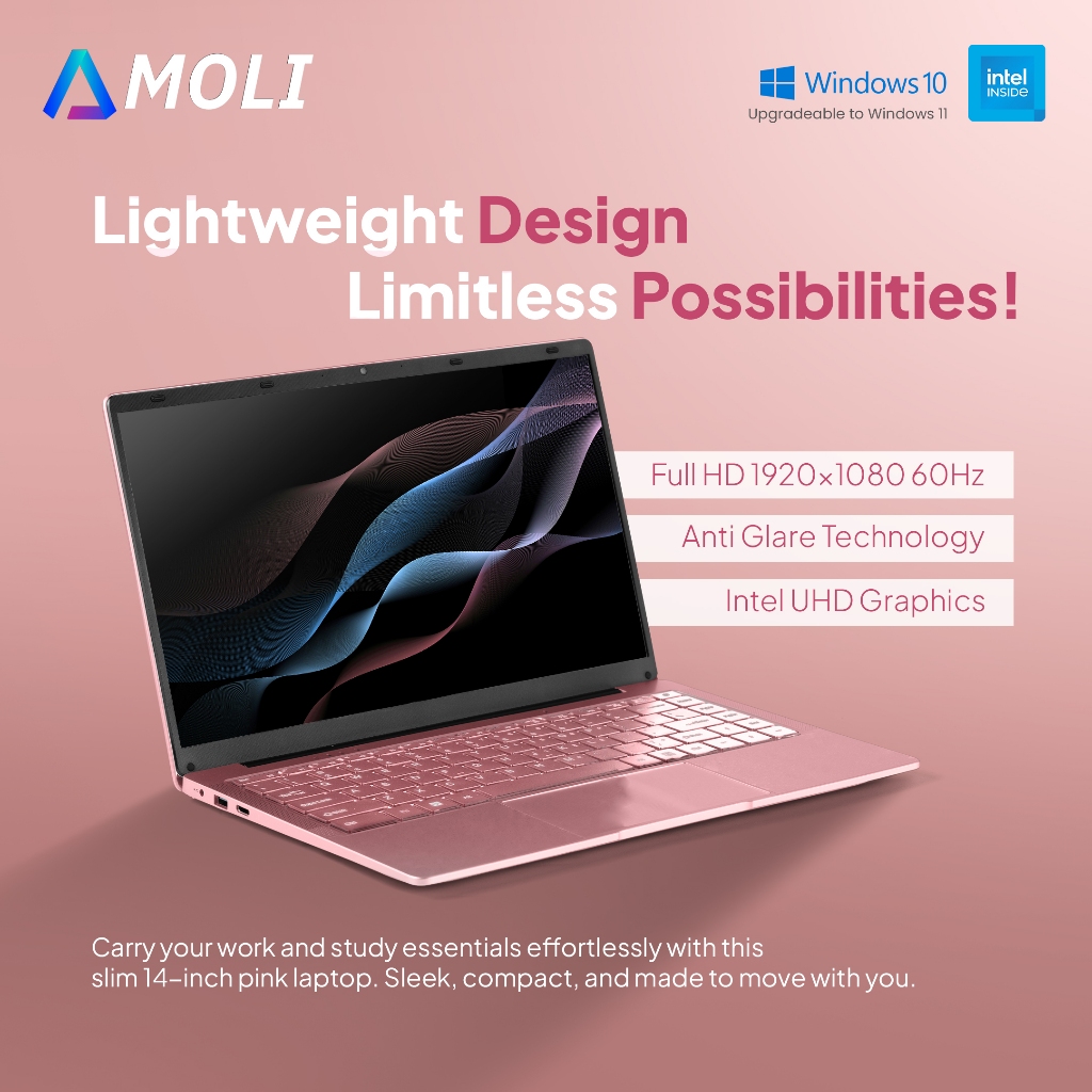 Amoli Laptop Baru Laptop Laptop 14 Inch Layar Hd Windows 11 Pink Silver Hitam Laptop Ram 8G+256Gbssd Intel N4000 Laptop