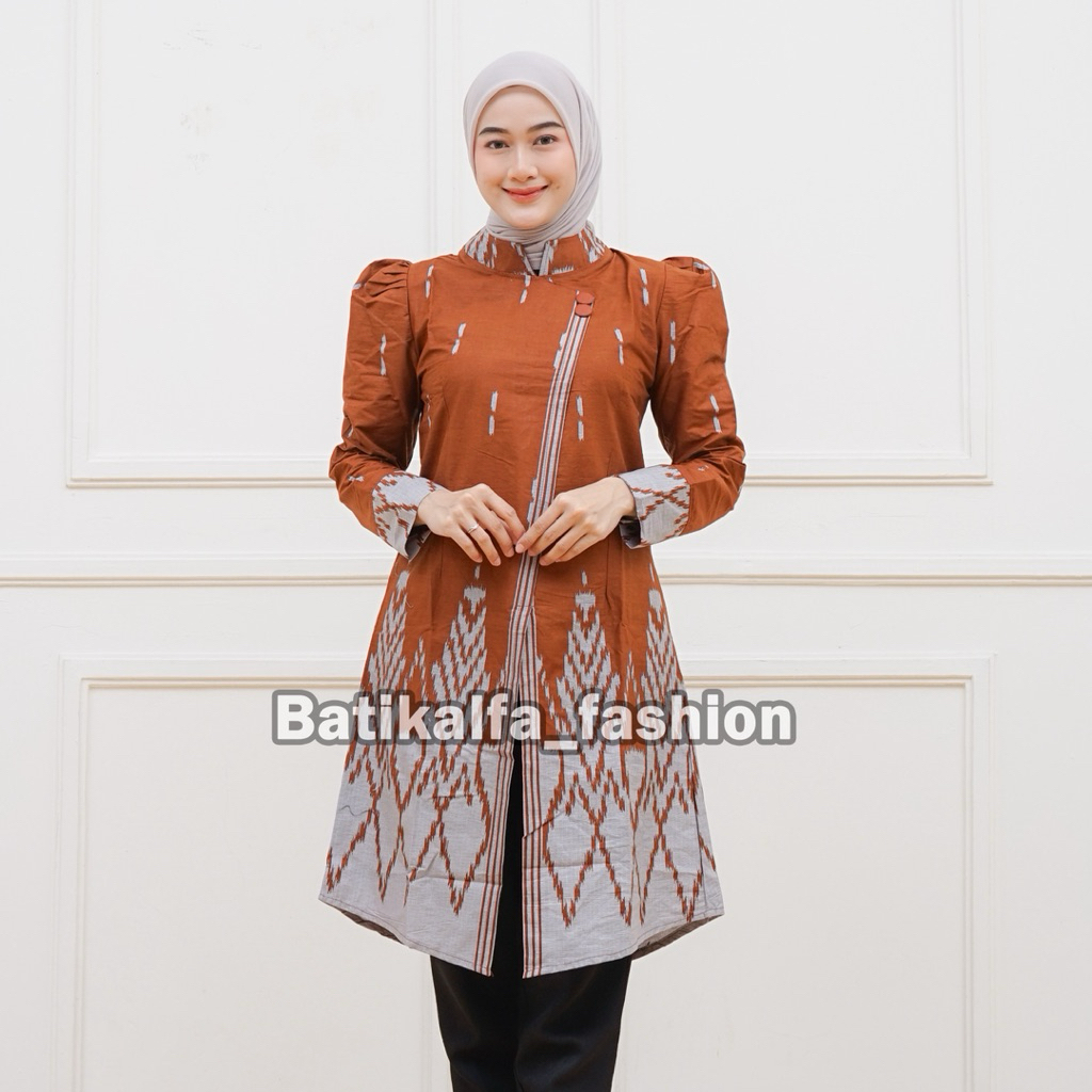 Batik Couple Terbaru Atasan Wanita Model Kebaya Janggan Lengan Puffy Bahan Katun Premium Motif Songket