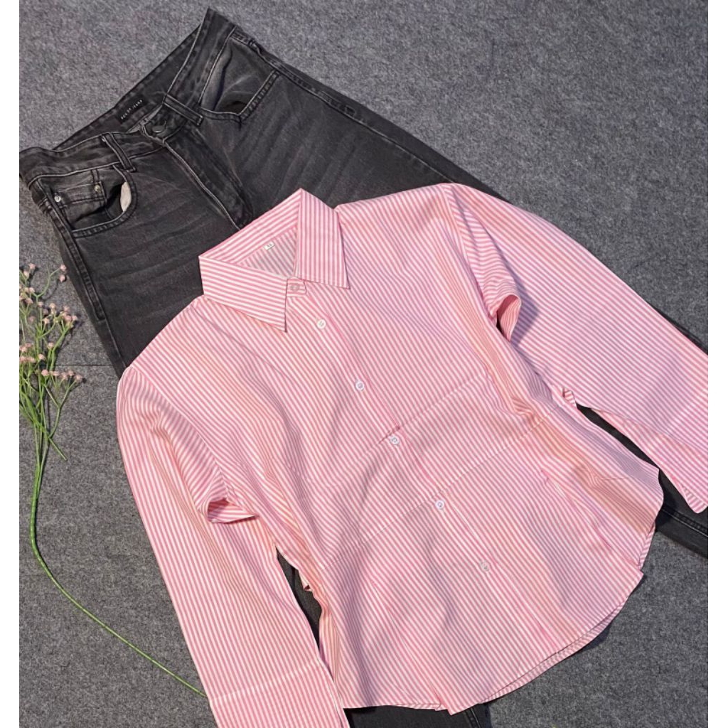 Kemeja Stripe Rempel Wanita Fit Body wanita Casual Daily Formal Bahan Nyaman Stylish Blouse Salur Murah Gratis Ongkir