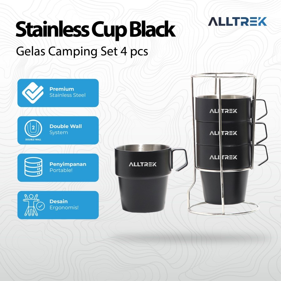 Alltrek Stainless Cup Camping Mug 300Ml 4Pcs Black Series