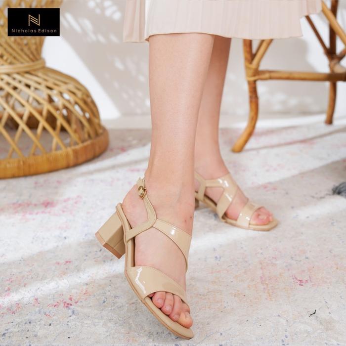 NICHOLAS EDISON SANDAL HEEL HEIDI STRAP HAK TAHU GLOSSY TERBARU OPEN TOE - BEIGE, 37