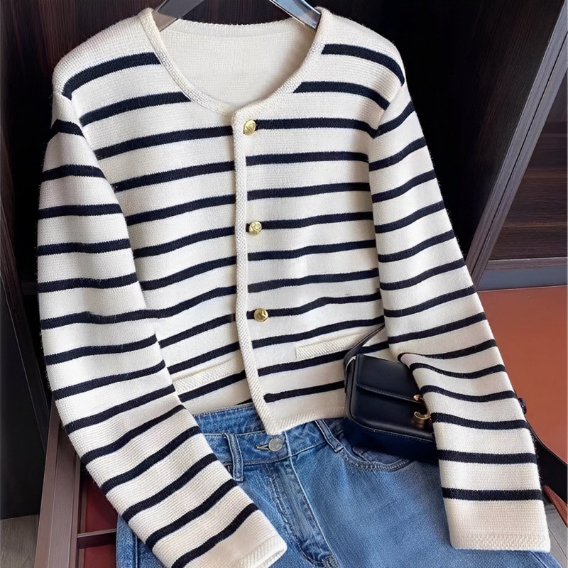 NAJWA - Cardigan Cassie Knitwear Premium RIB Katun Import Atasan Wanita/ Cheesy Cardy Stripes Murah Gratis Ongkir