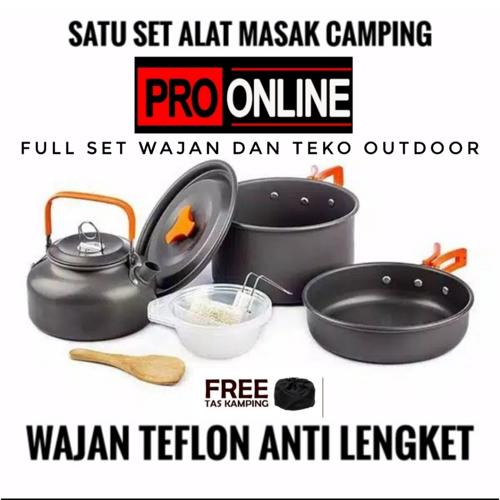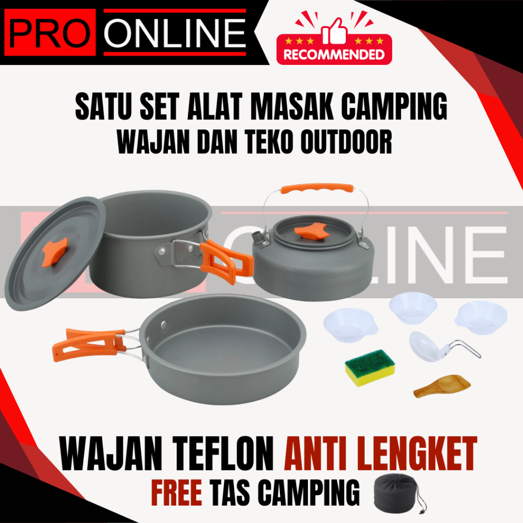 Alat Masak Camping Full Set - Cooking Set Ds 308 Sudah Ada Teko Air - Nesting Portable Traveling
