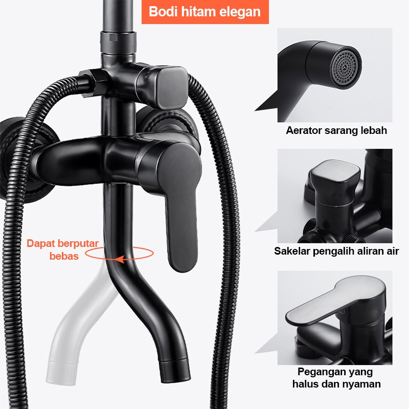 Lenodi Set Shower Kamar Mandi Set Panas-Dingin 4 Fungsi Set Sower Kamar Mandi Tembaga Lengkap