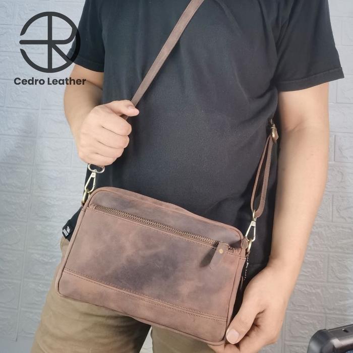 TAS SELEMPANG KULIT ASLI 2 IN 1 HANDBAG FREE TAMBAH NAMA ATAU LOGO - COKLAT TUA