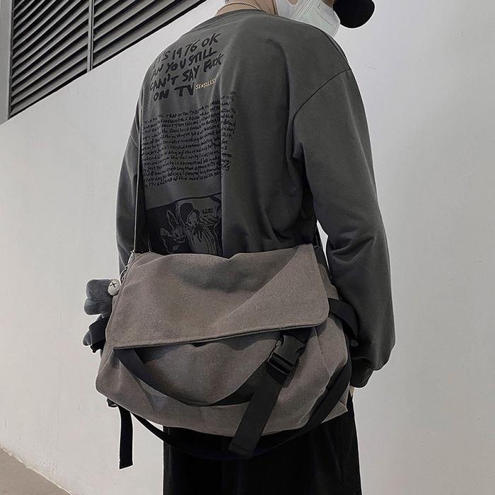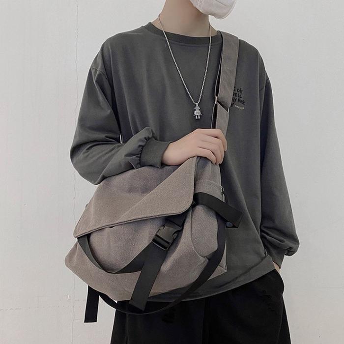 INS JAPANESE ULZZANG KOREAN FASHION CANVAS BIG CAPACITY MEN SHOULDER BAG CROSSBODY BAG MESSENGER BAG - GREY + GREY FROG