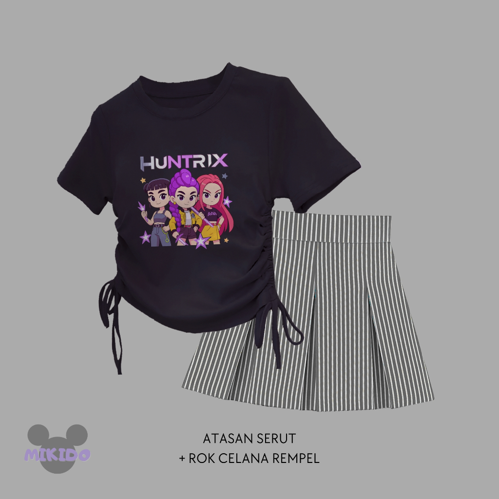 Setelan Kaos Serut Crop Top Dan Rok Celana Rempel Salur Perempuan Huntrix Umur 1-14 Tahun Part 1