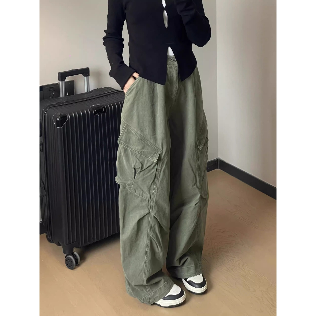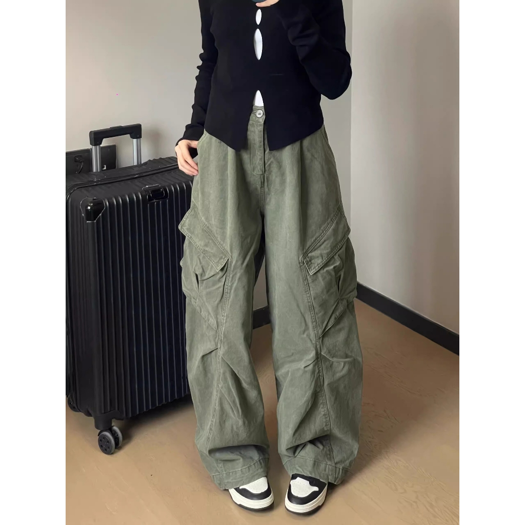 LULU PAKAIAN WANITA PREMIUM GREEN NEW HIGHWAIST CARGO CELANA JEANS WANITA