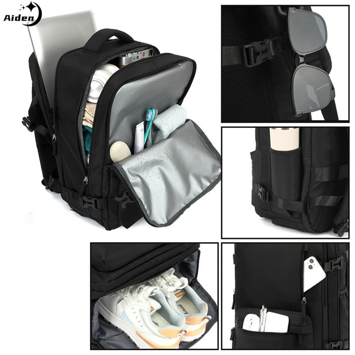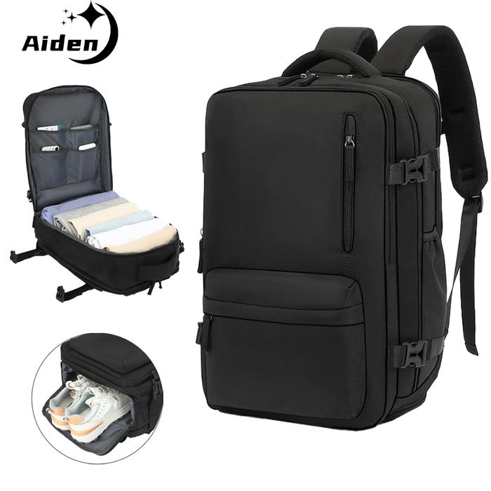 AIDEN TAS TRAVEL BACKPACK WANITA/PRIA MULTIFUNGSI KAPASITAS BESAR DENGAN RUANG SEPATU TERPISAH 35L - HITAM