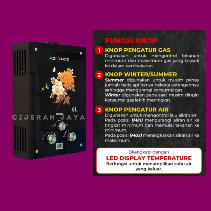 WATER HEATER GAS ADVANCE GWH 50 / GWH 70 PEMANAS AIR GAS ADVANCE + BONUS SHOWER
