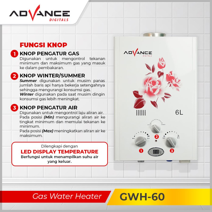 Water Heater Advance GWH 50 GWH 60 6L PEMANAS AIR GAS DIGITAL DAN OTOMATIS / Gas Water hiter