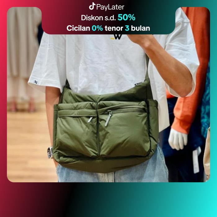 GUVDIV TAS SELEMPANG SANTAI DAN SPORTY TAS LAPTOP UNI BANYAK KANTONG TAHAN AIR DAN TAHAN LAMA SEKOLAH PRIA KANVAS KULIT CANVAS - HITAM