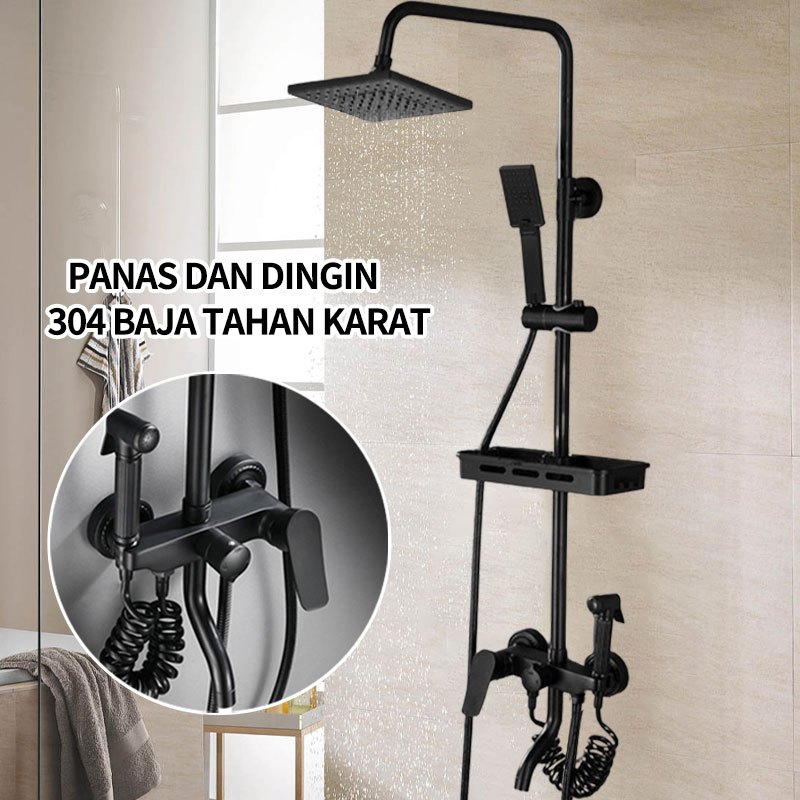 Sus304 Shower Set Paket Lengkap Shower Besi Stainless Shower Dan Bulat Kotak Vkamar Mandi Rain Shower + Keran Cabang