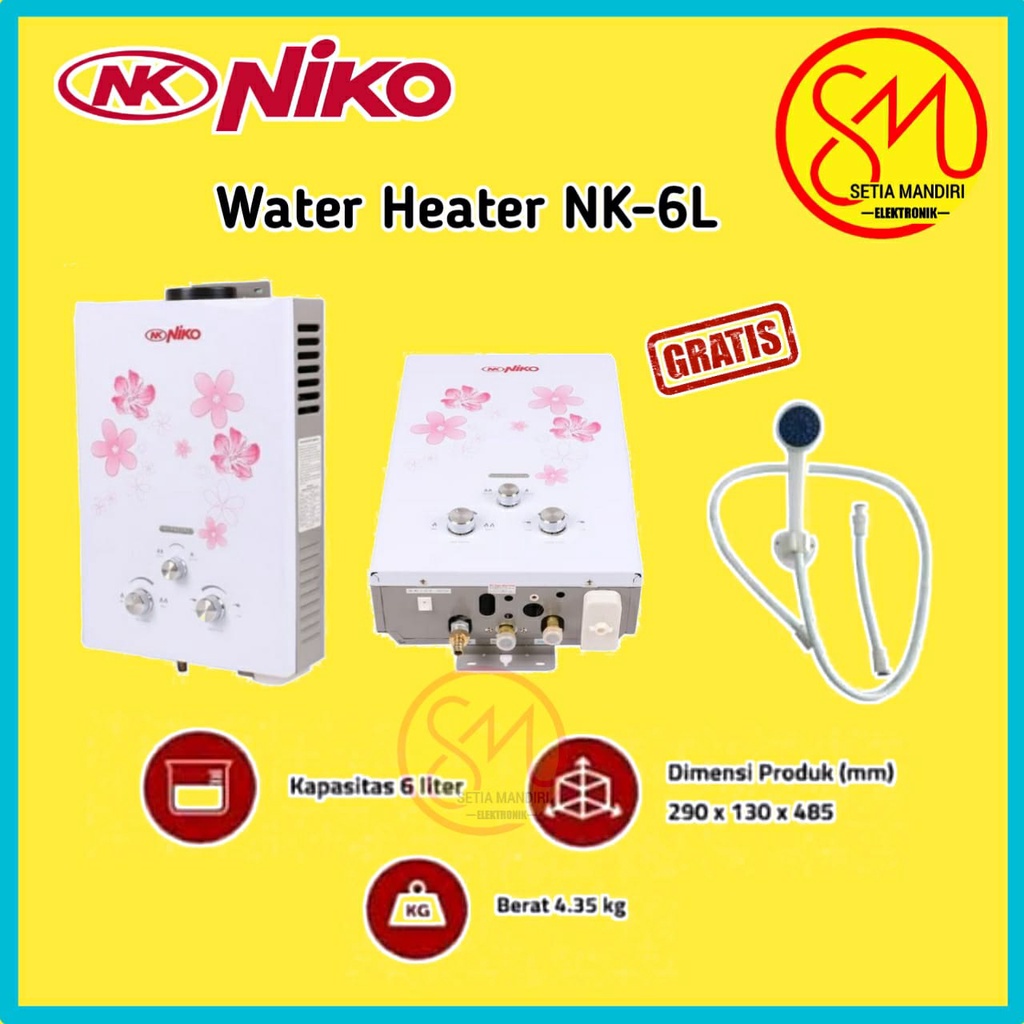 NIKO 6LN Gas Water Heater 6 Liter Pemanas Air Kaca NK6LN