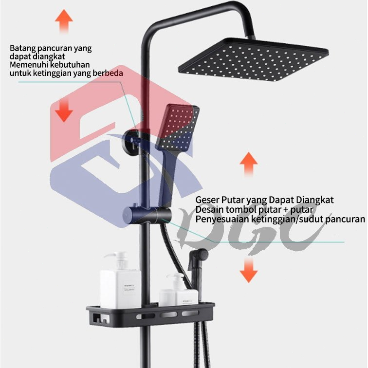 Dgc Shower 1 Set Panas-Dingin Shower Kamar Mandi +Kran Cabang Swall Mounted Shower Paket Lengkap Stainless