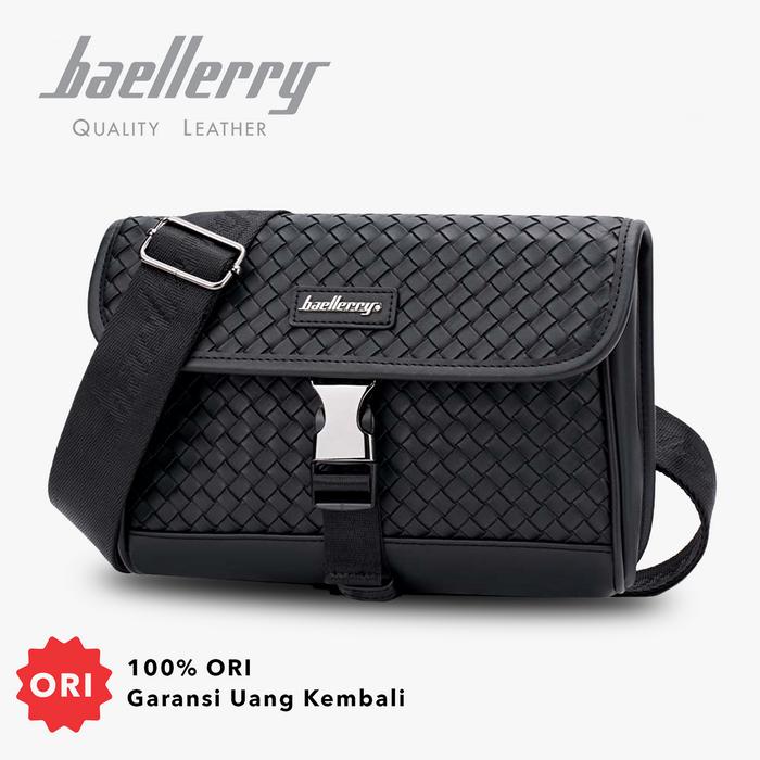 TAS SELEMPANG PRIA KULIT PU BAELLERRY N8926 - BLACK