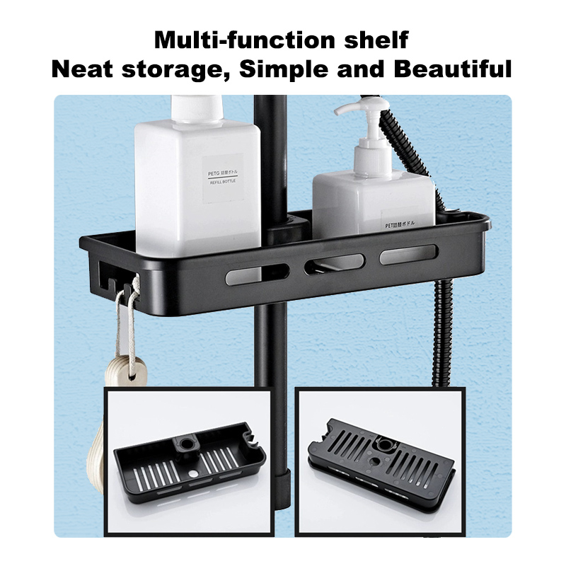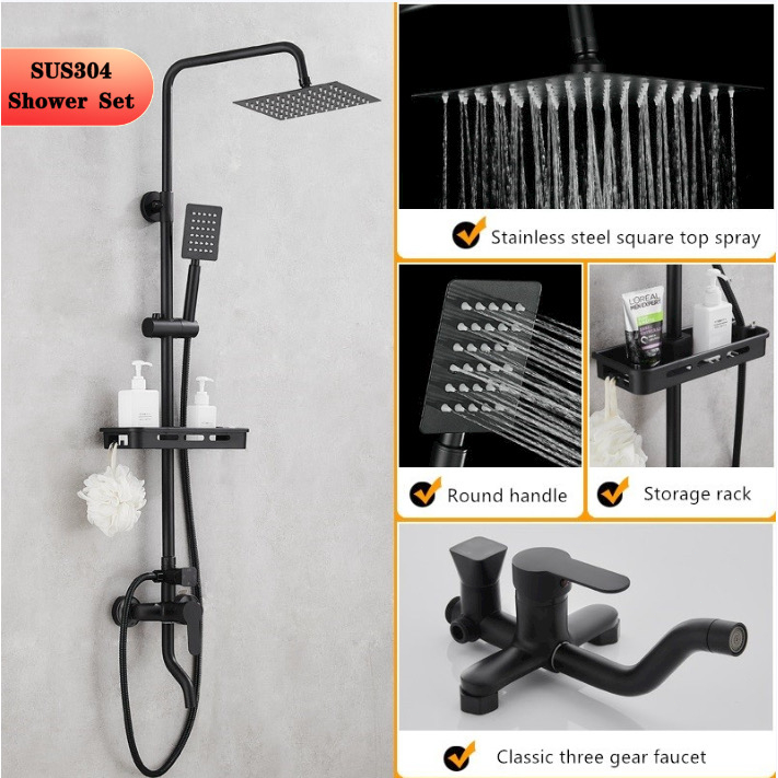 Sus304 4In1 Paket Shower Tiang Stainless Hitam Set Shower Panas Dingin Persegi Shower Kamar Mandi