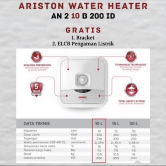 ARISTON ANDRIS AN2B 10 LITER 150 WATER HEATER LISTRIK 10 LITER 150 WATT