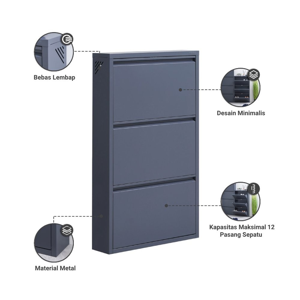 Informa Levi Kabinet Sepatu 3 Tingkat - Abu-Abu Organizer Sandal Dan Sepatu Rak Lemari Alas Kaki Serbaguna Tempat Penyim