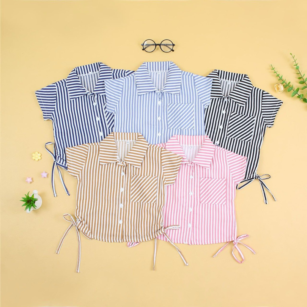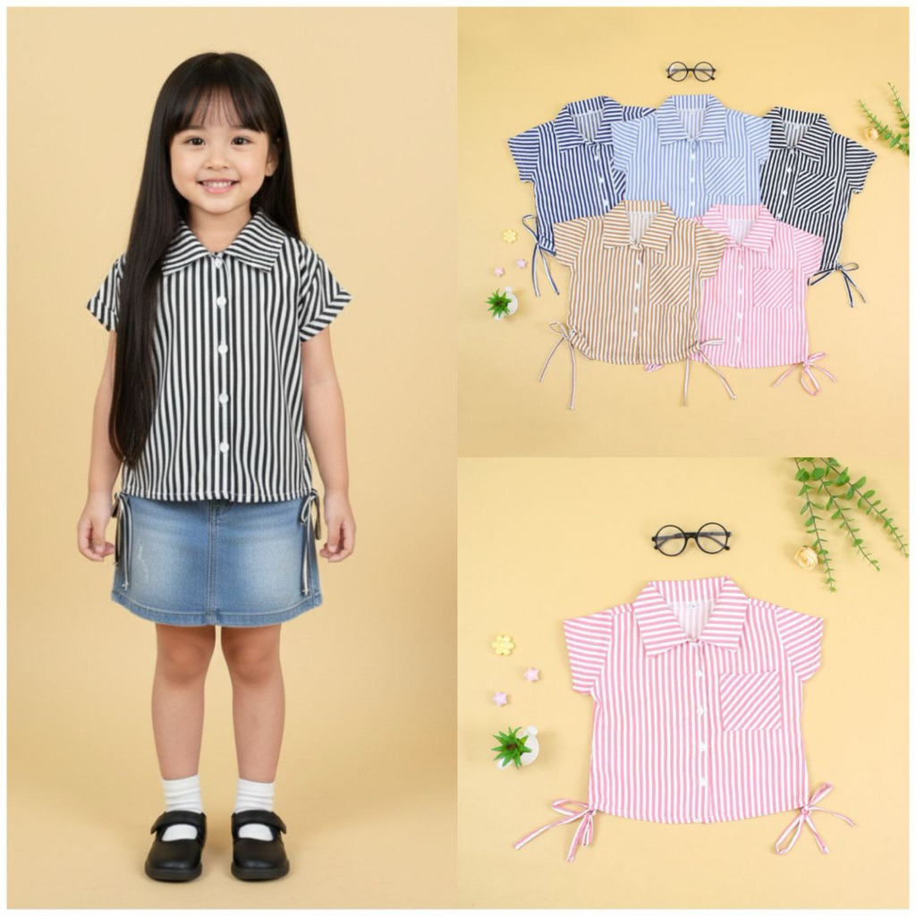 1-8Th Kemeja Salur Anak Perempuan Summer Stripe Kemeja Garis Garis Anak