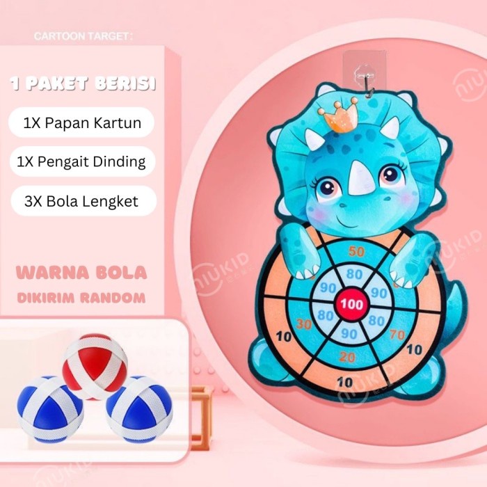 DP 0 TokoPapin Mainan Anak Lempar Bola Tempel Papan Panah Dart Game Board Ball Kartun